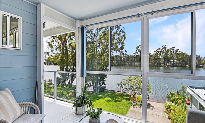 Enjoy your morning coffee in the cosy sunroom overlooking the water.