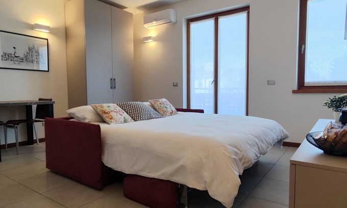 Bright studio flat located at 300 mts from Busto Arsizio Nord train station, so well connected between Malpensa airport and Milano city center.