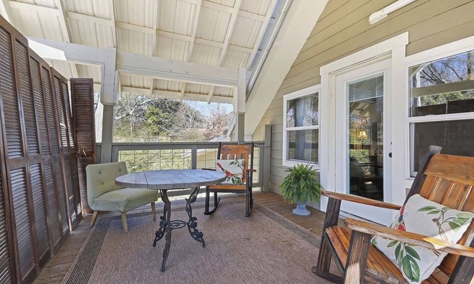 Located in downtown St. Francisville, Jasperilla Music Loft is an adorable loft located on an 8 acre family compound across from The St. Francisville Inn. You are only a 2 minute walk from popular restaurants, stores, and attractions. At the end the day, retreat to the loft and relax on your private, covered deck. The Jasperilla Pink House is just next door, offering an additional 2 bedrooms and a bath. Rented together, you can have 3 BR/2 BA.