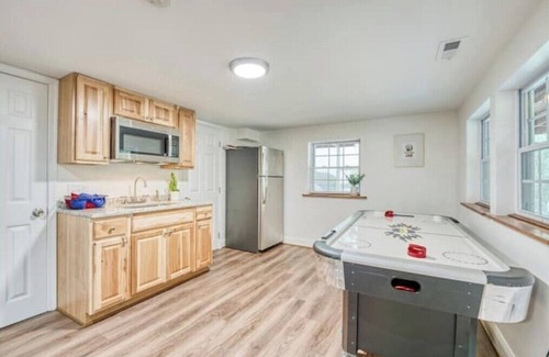 "We couldn't have asked for a better place to stay. The cabin is clean, comfortable, and equipped with all the amenities you could want. Our mornings started with coffee on the deck, followed by a dip in the hot tub. The fire pit was perfect for roasting marshmallows, and the air hockey table was a fun touch. Plus, being able to bring our dog made our trip even more special. Will definitely return!"