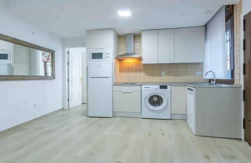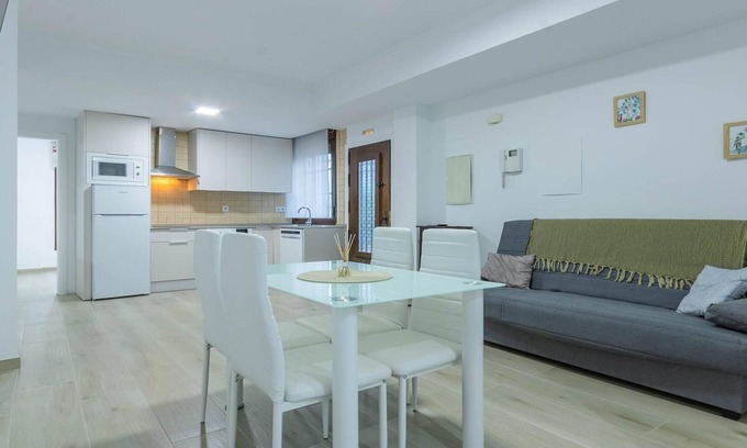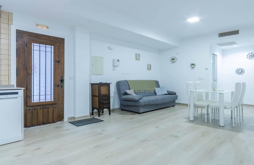 Located on the charming Calle Carlos Rubio, our holiday apartment offers an unparalleled experience in the Historic Centre of Córdoba. This cosy space, situated on the ground floor of a building with a beautiful flowered courtyard, is the perfect retreat for your holiday. As you cross the threshold, you will be welcomed into a warm and inviting haven, where every detail has been thought out for your comfort and enjoyment. Imagine waking up in the luxurious bedroom with a double bed, and starting your day in a modern and elegant bathroom with a shower, toilet, and bidet. The spacious living room, bathed in natural light streaming through its large windows, features a comfortable sofa bed where you can relax after a day exploring the city. A large table with chairs for four awaits you to share meals and special moments, while the open kitchen, fully equipped and integrated into the living-dining area, invites you to prepare delicious dinners and breakfasts.