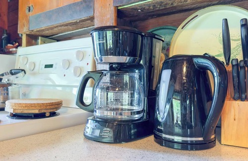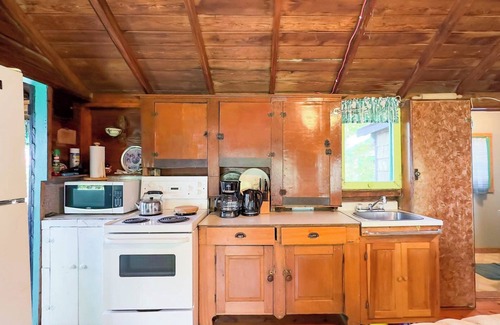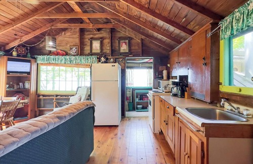 Step inside and feel the warmth of our well-loved cottage, with its cozy kitchen that boasts a quirky touch – the cupboard doors are made from a vintage refrigerator box! The high ceilings with exposed wood rafters add to the rustic vibe. The open layout seamlessly connects the kitchen, living, and dining areas. TV has Roku so you can stream your favourite movies from Prime/Netflix.