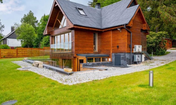 Very beautiful, comfortable timber house "Jeschkenpanorama", renovated in 2021, surrounded by trees, meadows and fields. On the outskirts, 1 km from the centre of Lückendorf, in a quiet, sunny position, 150 m from the edge of the forest, in the countryside. Private: property 1'000 m2 (fenced), large, well-kept garden with lawn and wildlife garden. Barbecue, children's playground. In the house: air conditioning, burglar alarm system. Room cleaning weekly (extra). Bread roll service on request. Parking (for 2 cars) at the house, single garage. Grocery 3 km, supermarket 5 km, restaurant 20 m, bakery 100 m, café 3 km, bicycle rental 12 km, bus stop "Lückendorf Hochwaldblick" 200 m, railway station "Zittau Bahnhof" 11 km, outdoor swimming pool 5 km, bathing lake 6 km. Nearby attractions: Berg Oybin 3 km, Basilika Jablonné v Podještědí 3 km. Well-known ski regions can easily be reached: Hain 3 km. Well-known lakes can easily be reached: Olbersdorfer See 5 km.