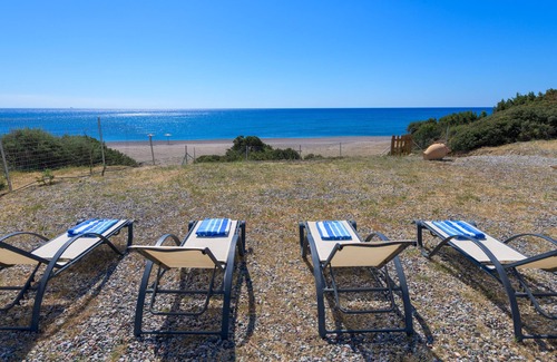Jewel Blue Villa is located on the beach at Kiotari, South Rhodes. It features a sun terrace with unlimited view at the Aegean sea. The property offers private beach area with sun beds and umbrellas. Barbecue facilities can also be found. The Villa, which is fully air conditioned comes with two bedrooms, a living room, a fully equipped kitchen with dinning area and a big bathroom. Free WiFi and a flat screen TV is provided. This holiday villa offers o children's playground and private parking free of charge.