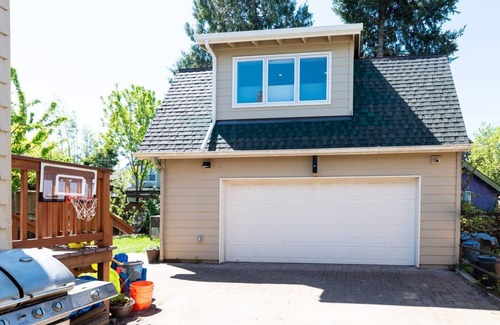 Our family welcomes you to a slice of our Portland life. We live in a quiet residential neighborhood where the sounds you are most likely to encounter are the distant squawks of our backyard chickens, the pitter-patter of raindrops on the skylight, or the occasional children's squeal or dog bark.