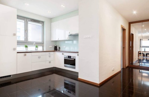 The neighborhood can fulfill all daily needs due to numerous shopping and catering points in the vicinity. The shopping center „Atrium Promenada” is just 350 m from the apartment, and within 100 meters radius guest will find many restaurants. The area has great access to other districts, making it a perfect starting point to explore Warsaw. Using public transport, the Old Town and the strict city center can be reached in 30-40 minutes.