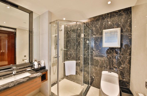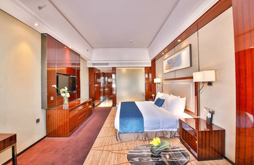 Jianghai Country Garden Phoenix Hotel offers 195 air-conditioned accommodations with safes and complimentary bottled water. Beds feature down comforters and premium bedding. 32-inch LCD televisions come with cable channels. Bathrooms include bathrobes, slippers, complimentary toiletries, and hair dryers.