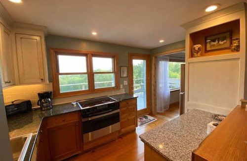 On the lower level there is a third bedroom with trundle bed, full ensuite bath complete with large shower w/rain head and new toto toilet with separate entrance. A marble hallway connects the laundry room and Family room areas. The family room is complete with an antique writer's desk w/storage drawers , sleeper sofa w/ memory foam mattress , card table and chairs, 50" smart TV with Sonos playbar with a central wood burning fireplace. A kid's table and chairs is available upon request. Multiple rooms with space to work allow you comfortably work remotely as needed with excellent Wi-Fi especially with multiple users. The lower level has access to the slate walkway to the backyard. The heating and A/C are split systems 5 zones with the ability to control remotely at each location. For the children we offer endless books, a crib some board games. A Solo Stove fire pit is available in the fall and winter months, guests provide the wood for all fireplaces and fire pit.