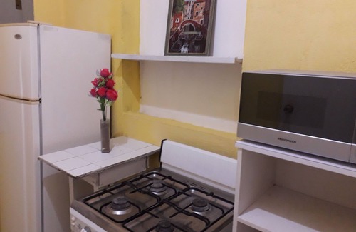 stove, microwave oven, mixer, etc. Laundry area washing machine iron and iron board for you comfort.