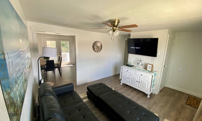 Coastal Cottage is a 2 bedroom house with all the amenities of home. With 4 beds there is room for your family or guests. Kick back and relax in front of a large screen TV . Enjoy a well furnished kitchen with a stove, oven and plenty of utensils, kitchen appliances and pots and pans.