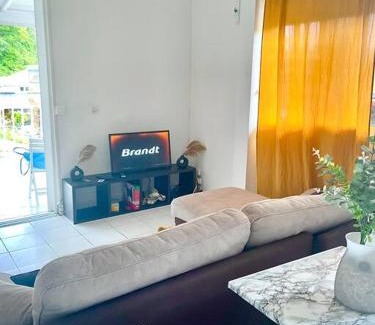 The apartment also provides free Wifi and free private parking. Providing a terrace and mountain views, the apartment includes 1 bedroom, a living room, cable flat-screen TV, an equipped kitchen, and 1 bathroom with a shower. Towels and bed linen are provided in the apartment. The property has an outdoor dining area. Pointe-à-Pitre Le Raizet Airport is 6.8 miles away.