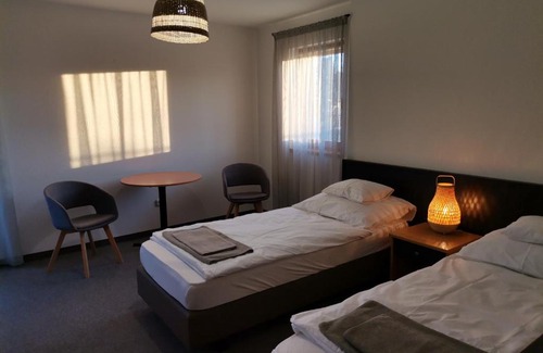 Offering city views, Jonathan Bed&Pizza in Komárom features accommodations, a garden, and a terrace. The property is around 29 miles from Győr Town Hall, 30 miles from Győr Basilica, and 30 miles from Chateau Bela. The bed and breakfast offers rooms with air conditioning, free private parking, and free Wifi. At the bed and breakfast, the units are fitted with a wardrobe, a flat-screen TV, a private bathroom, bed linen, and towels. The rooms are equipped with heating facilities. Guests may eat at the on-site family-friendly restaurant, which is open for dinner and lunch. Courtyard of Europe is 2 miles from the bed and breakfast, while Fortress of Komarno is 2.3 miles away. Budapest Ferenc Liszt International Airport is 66 miles from the property.