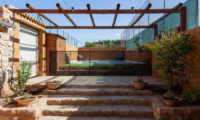 Ubicada justo al lado del parque infantil, de la pista polideportiva de fútbol y baloncesto, y de las piscinas del pueblo, goza de unas vistas privilegiadas desde la misma terraza. Es ideal para los niños y ofrece infinitas opciones de ocio dentro y fuera de la casa.