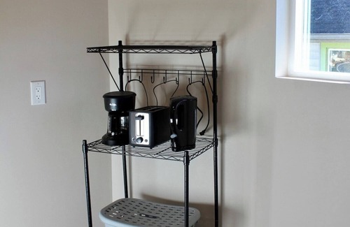 - In each Kitchen: Dining table and chairs, double induction cooktop, pot holders, trivets, refrigerator, microwave, coffee maker, toaster, electric kettle, blender, dish rack, dish soap, sponge, and dish brush, garbage bin and trash bags, dustpan and brush, all-purpose cleaner and room spray, paper towels and dish cloths, knives and cutting boards, cups and glasses, wine and can openers, colanders, cookware and cooking utensils, placemats, dinnerware, and cutlery sets. Complimentary hot beverages and condiments.