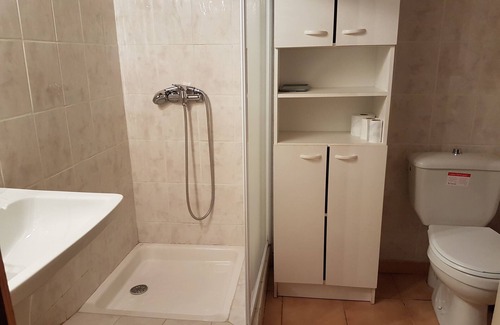 Shaded terrace area. Living room / kitchen, WiFi TV, 2 bedrooms: two double beds, bathroom with shower, electric heating.