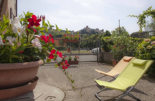 Outside the house there is a garden with chairs and table where you can sip a soft drink or have a meal with friends, at the sight of the imposing castle.