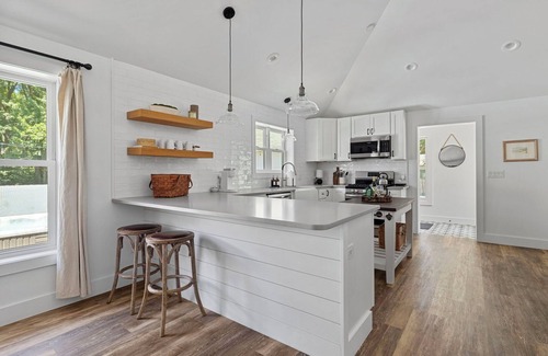 The Cape Cottage is a stunning vacation spot, providing endless opportunities to create lasting vacation memories with family and friends. Stepping inside, you’ll immediately notice the rich styling, open design, and spaciousness that say you’ve arrived at a dream-come-true, very special vacation cottage! You and your guests will find rest and relaxation come easy here, whether it’s a movie night in front of a heart-warming fire, snacking and chatting at the wraparound kitchen island, enjoying a meal in the sweet dining room, or sipping your favorite drink while gathering in the chic screened-in porch to chill out to the sights and sounds of sunset near Lake Michigan. Enjoy it all!