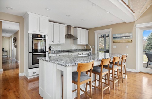 The upper-level primary suite has its own gas fireplace, full bathroom, and private balcony. The living/lounge area outside the suite features a Peloton bike so you can keep your workouts on track, and a dedicated workspace to stay in touch with the office. The three main-floor bedrooms share 1.5 baths, and there is another full bath on the lower level. An additional recreation area with a Smart TV, children’s toys, and games is located in the basement—a perfect spot for the children to play while the adults relax upstairs!