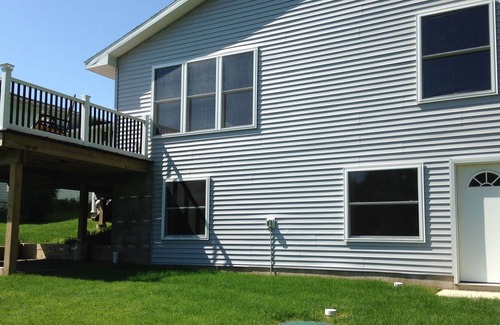 Enjoy your get-away in this beautiful newly built one bedroom, one bath apartment with a private entrance in the rear of our home. It is fully equipped with microwave, stove, refrigerator, washer, dryer, and dish washer. The open-living space includes a kitchen with island, dining area with seating for six, a queen-sized sofa bed, flat screen TV, free Wi-Fi, and phone. The full bath and walk-in closet are off the queen-sized bedroom. Enjoy the picturesque views of the lake, possibly observing wildlife such as deer, herons, and eagles. In any season, this is a peaceful and beautiful place to be.
