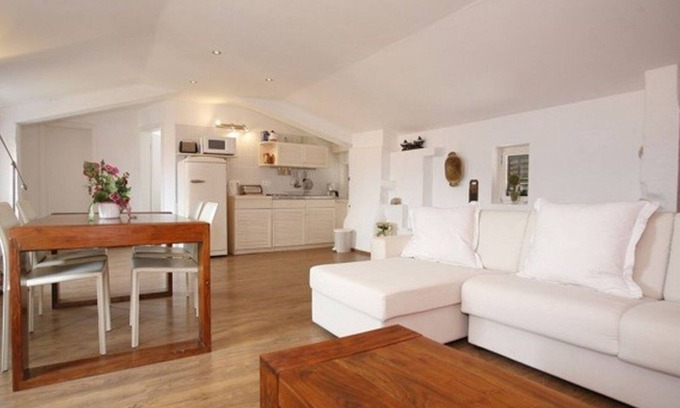 Apartments are located in the heart of the old town, just 3 minutes from the white pebble beach. The apartments all have sea views and are equipped for 2-4 persons with air conditioning, equipped kitchen (coffee maker, toaster, kettle, cd player with usb connection, sat tv with german channels) and dining area, single with sofa bed as well as double and twin rooms , The bathrooms have shower / WC.