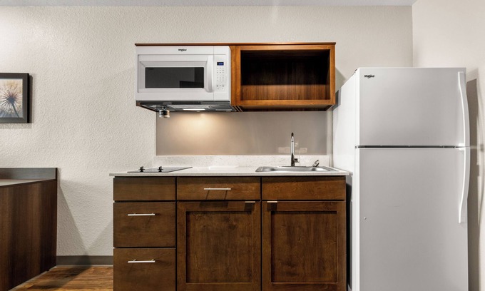 Step into comfort in Denver! Your room is filled with amenities; a living area, full kitchen with stove, refrigerator, microwave, and ergonomic workspace perfect for extended stays. Maintain your fitness in our 24-hour gym or kickstart your morning with a burst of energy from our complimentary coffee station.