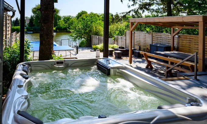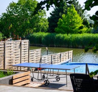 This beachfront property offers access to a terrace, free private parking, and free Wifi. Guests have access to a sauna and hot tub. The air-conditioned vacation home consists of 4 bedrooms, a living room, a fully equipped kitchen with a dishwasher, and 1 bathroom with a hot tub and a hair dryer. Towels and bed linen are offered in the vacation home. For added privacy, the accommodation features a private entrance. A year-round outdoor pool and a private beach area can be found at Körös-parti Terasz Vendégház, along with a garden.
