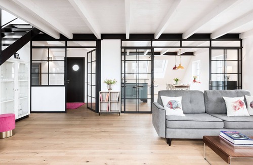 The apartment is on two levels, connected by a steel spiral staircase. On the upper level there are two bedrooms (ideally a parent and a children's bedroom). The spacious living area with bath and separate toilet leaves plenty of free space and space to stay - even in bad weather.