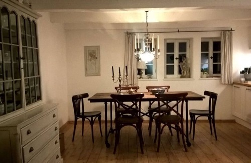 The charming artist's estate, a former fisherman's house from the early 17th century, was redesigned in 2014 by the well-known painter and sculptor Christian Wahl. Christian Wahl restores old houses with a great deal of knowledge, style and sensitivity, giving them their original charm. Its restored buildings received the title 'House of the Year' in 1998 and 2010. In loving detail, the old fisherman's house was restored. Many treasures, raised on flea and antique markets, were renovated and found their destiny in this enchanting house. With this property, the picturesque townscape of the Alte Fischer fishing Dießen is enriched by another gem. An ambience for guests who love something special.