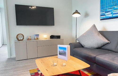 A 6-minute walk from Tossens Beach in Tossens, KÜSTE33/38 - strandnah mit Sauna & Balkon direkt an der Küste! offers accommodations with access to a sauna. This apartment is 30 miles from Bremerhaven Central Station. The apartment also provides free Wifi, free private parking, and facilities for disabled guests. The apartment consists of 1 bedroom, a living room, a fully equipped kitchen with a dishwasher and a coffee machine, and 1 bathroom with a shower and a hair dryer. This apartment also offers a balcony that doubles up as an outdoor dining area. The accommodation is non-smoking. Bremen Airport is 54 miles away.