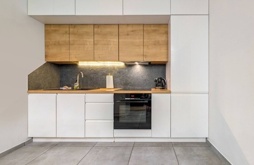 Kępa Mieszczańska Superior Apartment is a stylish and functionally furnished apartment featuring a living room with a sofa bed and kitchenette, two separate bedrooms with a comfortable double bed and a sofa bed, a bathroom, and a spacious balcony where guests can relax and enjoy a morning coffee or an evening glass of wine. Additionally, one of the bedrooms includes a desk, perfect for studying or remote work. Guests have access to a range of practical amenities, including free Wi-Fi, a TV, washing machine, iron, hairdryer, dishwasher, oven, induction hob, microwave, toaster, coffee maker, kettle, and kitchen accessories. A parking space in the underground garage is also available for guests.