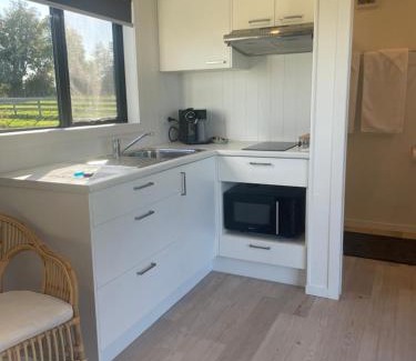 Offering a garden, Kaakano Ridge offers accommodations in Te Kauwhata. This property offers access to a balcony, free private parking, and free Wifi. With direct access to a terrace with lake views, the air-conditioned chalet consists of 1 bedroom and a fully equipped kitchen. Towels and bed linen are featured in the chalet. The property has an outdoor dining area. Miranda Hot Springs is 24 miles from the chalet. Hamilton Airport is 39 miles away.