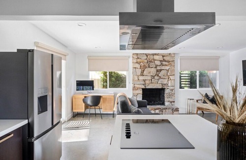 Welcome to Kalima Sky, your serene desert retreat. The newly renovated interior features two bedrooms, two full bathrooms and a beautiful, fully equipped kitchen. Guests can relax on the back patio with a dining table, BBQ, and a pool/spa combo. Stay active with our home gym, and explore the area using our golf cart. Plus, you're just a short ride away from Old Town La Quinta, offering excellent dining and shopping experiences. Your peaceful desert escape awaits!