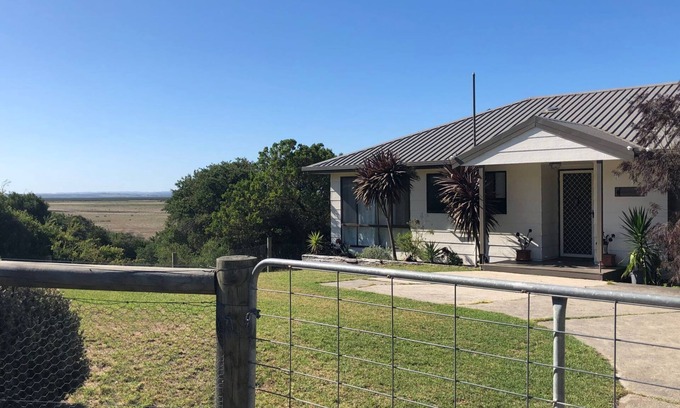 The house has amazing views over farmland to Anderson's Inlet and the Tarwin River which can been seen from every window in the open-plan living/dining/kitchen area.