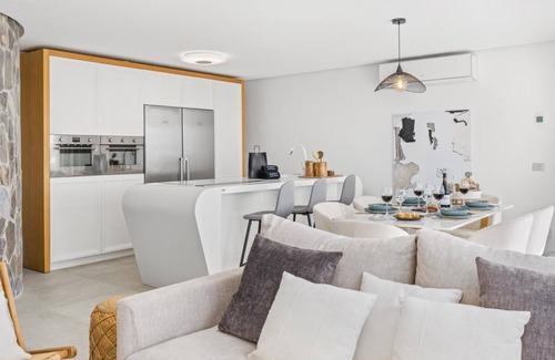 A true hideaway, where the beauty of nature and luxury come together. With a direct gate from the property that connects to a natural park, you will feel like you are one with nature. The villa is perched on an elevated area, providing you with a panoramic view of the sea and the mountains.As you enter the villa, you will be greeted by a spacious open-plan living room and kitchen area, which is perfect for entertaining and enjoying the stunning sea views. The living room area is tastefully decorated with comfortable sofas and chairs, and large windows that allow plenty of natural light to flow in. The kitchen is fully equipped with modern appliances and has everything you need to cook up a storm.