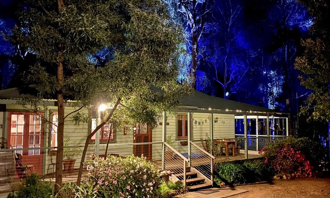 As the sun sets over Karri Tree Cottage, watch as the LED tree lighting Illuminates the surrounding towering tree canopies.