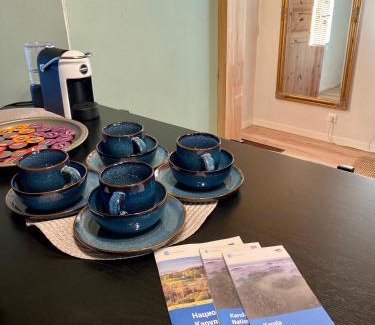Food & DrinkBottle of water, Tea/Coffee makerBathroomHairdryer, Toilet paper, Shower, Shampoo, Conditioner, Toilet, Private bathroom, Body soap, Towels, Free toiletries, Bathtub or showerMedia & TechnologyFlat-screen TV, TV, Streaming service (like Netflix)ActivitiesHot tubGeneralFire extinguisher, Iron, Key access, Smoke Alarm, Private entrance, Carbon monoxide detector, Carpeted, Heating, Trash cansKitchenMicrowave, Wine glasses, Washing machine, Refrigerator, Coffee machine, Cleaning products, Kitchen, High chair, Electric kettle, Kitchenware, Dining table, OvenLiving AreaDining area, Desk, Sofa, FireplaceViewGarden viewBedroomChildrens' cribs, LinensOutdoorsOutdoor furniture, Outdoor dining areaRoom AmenitiesDrying rack for clothing, Clothes rack, Sofa bed, Socket near the bedCleanliness & disinfectionHand sanitizer |