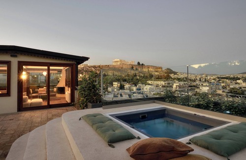 Ideally located in the heart of Athens, this luxury accommodation of 200 sq.m., offers unobstructed view to the Acropolis Hill and the Parthenon from its private sun terrace. Only 300 m away from Odeum of Herodes Atticus and 400 m away from the new Acropolis Museum, the apartment provides easy access to all major archaeological sites and museums. It is also conveniently located close to a variety of shops, cafes and restaurants.