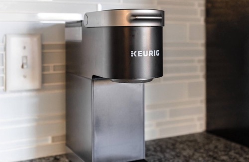 - Full kitchen with dishes, cookware, dishwasher, and Keurig coffee maker