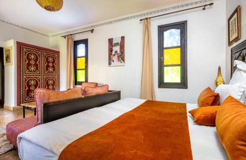 Kasbah Alili in Marrakesh provides accommodations with a garden and a shared lounge. With garden views, this accommodation provides a balcony and a swimming pool. The guest house also offers free Wifi, free private parking, and facilities for disabled guests. At the guest house, each room comes with private entrance, wardrobe, soundproofing, a flat-screen TV, and a private bathroom. A terrace with an outdoor dining area and pool views is offered in select units. At the guest house, the units are fitted with a seating area. À la carte and continental breakfast options with fresh pastries, pancakes, and fruit are available every morning at the guest house. Guests may eat at the on-site family-friendly restaurant, which is open for dinner, lunch, brunch, and cocktails. For guests with children, Kasbah Alili features outdoor play equipment. Both a bicycle rental service and a car rental service are available at the accommodation. Bahia Palace is 5.9 miles from Kasbah Alili, while Djemaa El Fna is 5.9 miles from the property. Marrakech-Menara Airport is 6.2 miles away, and the property offers a paid airport shuttle service.