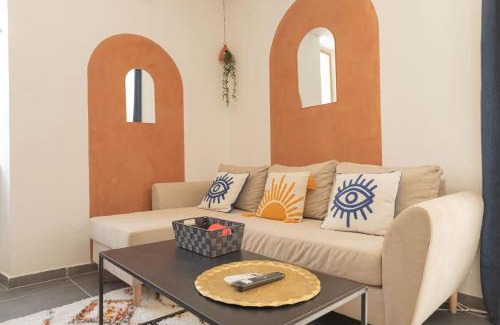 KasbahBoHome, Expérience d'ailleurs, centre ville, Nîmes features air-conditioned accommodations in Nîmes. This recently renovated apartment is located 21 miles from Arles Amphitheatre and 28 miles from Avignon Central Station. Free Wifi is available throughout the property, and Parc Expo Nîmes is 1.8 miles away. Each unit comes with a sofa, a seating area, a flat-screen TV, a well-equipped kitchen with a dining area, and a private bathroom with a hair dryer. An oven, a microwave, and toaster are also available, as well as a coffee machine and a kettle. At the apartment complex, each unit has bed linen and towels. Papal Palace is 28 miles from the apartment, while Zenith Sud Montpellier is 29 miles from the property. Nimes-Ales-Camargue-Cevennes Airport is 5.6 miles away.