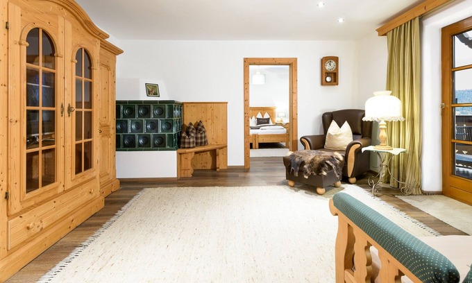 The view of the lush forests in front of the Nockspitze and the Patscherkofel has something very reassuring. But that's why the name of the apartment "Waldkönig" does not come at all. If you look closely, you'll find a handmade tile on the stove in the apartment that adorns a magnificent red deer. It is not unusual for us to visit deer in the meadows behind the Kasperhof. Maybe you'll see some at dawn.