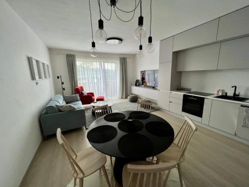 Providing a garden, Kasperky 14 provides accommodations in Kašperské Hory. Housed in a building dating from 2023, this apartment features free Wifi and free private parking. Outdoor seating is also available at the apartment. Featuring a balcony and mountain views, the spacious apartment includes 1 bedroom, 2 living rooms, satellite flat-screen TV, an equipped kitchen, and 1 bathroom with a shower. The accommodation is non-smoking. During the colder months, guests can enjoy winter sports in the surrounding area. The nearest airport is Ceske Budejovice Airport, 52 miles from Kasperky 14.