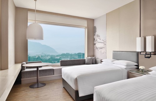 Kathmandu Marriott Hotel offers 214 accommodations with minibars and safes. Beds feature down comforters. A pillow menu is available. 49-inch LED televisions come with premium cable channels. Guests can make use of the in-room refrigerators and coffee/tea makers. Bathrooms include separate bathtubs and showers with jetted bathtubs, bathrobes, slippers, and complimentary toiletries.