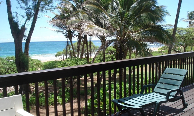 NA PAINA is a spacious 2-story cedar house nestled in ironwood trees right on the sandy beach at Anahola Bay. This classic old-school beach house has two decks and spectacular ocean views. Anahola is a secluded bay, located in a small residential community and has a sand-bottom (not coral) beach suited for swimming and surfing. Tide pools and snorkeling areas are located at each end of the bay, a short walk down the beach. If you are looking for a resort experience, this is not it! The house is perfect for family gatherings or small groups and sleeps up to ten people. It is within easy driving distance of restaurants, golf, and shopping.
