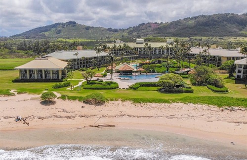 This ground floor, pool and ocean view condo is freshly renovated with all-new Flooring, Paint and Furnishings along with new light-and-bright artwork and accents making this condo a cut above the rest at Kauai Beach Resort. This studio features two Brand New Queen Beds. This is the perfect location, you will have your own lanai (double the outdoor space vs the units that aren't ground floor) and just a few easy steps to one of the 4 swimming pools, walk-up bar and water slide! Kauai Beach Resort has much to offer owners and guests. Centrally located just a few miles from the Lihue Airport, guests will enjoy being able to easily get anywhere on the island!