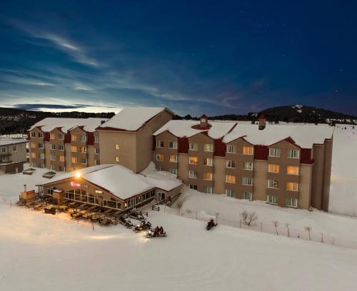 Located near forests on the slopes of the Uludağ, Kaya Uludag is located 14 mi from Bursa. Ski slopes are located 33 feet from the property. Guests can benefit from indoor pool and free WiFi throughout the property. Spacious rooms of Kaya Uludag feature panoramic mountain views overlooking the ski tracks and central heating. Each room has a seating area with satellite TV. Kaya Uludag restaurant is open for lunch and dinner, and serves buffet of international cuisine and Turkish dishes. Kaya Uludag has a wellness center with a sauna and Turkish bath. Guests can enjoy a relaxing massage. The hotel also has a games room.