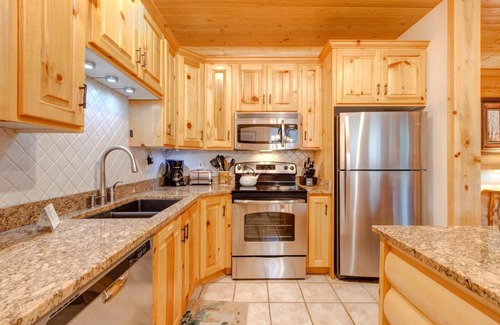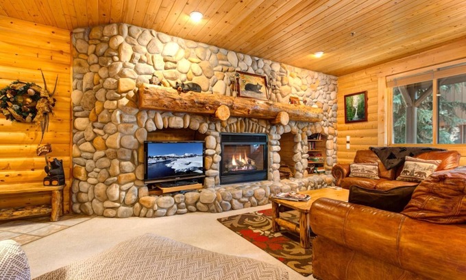 This bright 2-bedroom, 3-bath will welcome you with a log cabin-like interior decor and a natural sunlit open concept layout that combines the kitchen, living room, and dining room creating a warm space for your group to gather and reminisce about your day's adventures.
