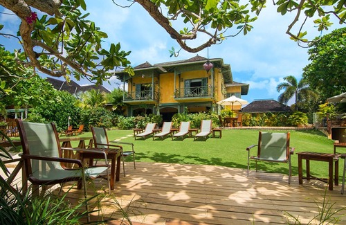 Outside Villa Keela Wee is tastefully decorated with windows and trellises are draped with flowering vines, bougainvillaea, hibiscus, shrimp flowers and oleander, attracting delicate hummingbirds and the yellowbird renowned for its song. Interiors are colourfully furnished in tropical colours and art. Stepping stones lead across the velvet lawn to Keela Wee's fine sand beach and crystal clear water. Complimentary sea kayaks and an offshore sunning platform enable carefree hours of sport and relaxation on the azure water just steps from the veranda.
