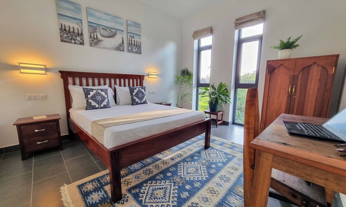 This modern beautifully decorated apartment is located at The Soul residential resort in Paje area, Zanzibar. The unit is a three-bedroom serviced condo that can accommodate 4 guests. The pristine stunning Paje beach is 400 meters from the residence, and guests can access the beach by foot. Paje beach is known for its turquoise waters facilitating thrilling water sports. You will enjoy the enriching cultural encounters and unforgettable sunset vistas, all nestled on the beautiful eastern coastline of Zanzibar.
