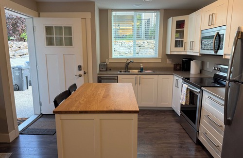 Relax in a quiet private 1BR suite backing onto Black Mountain Golf Course. Just 35 mins to Big White and 15 mins to Kelowna’s beaches, with hiking trails and a park with tennis courts just steps away. Enjoy a full kitchen, in-suite laundry, heated floors, off-street parking, and easy self-check-in. The ideal base for golf, skiing, wine country, or simply unwinding in the Okanagan.